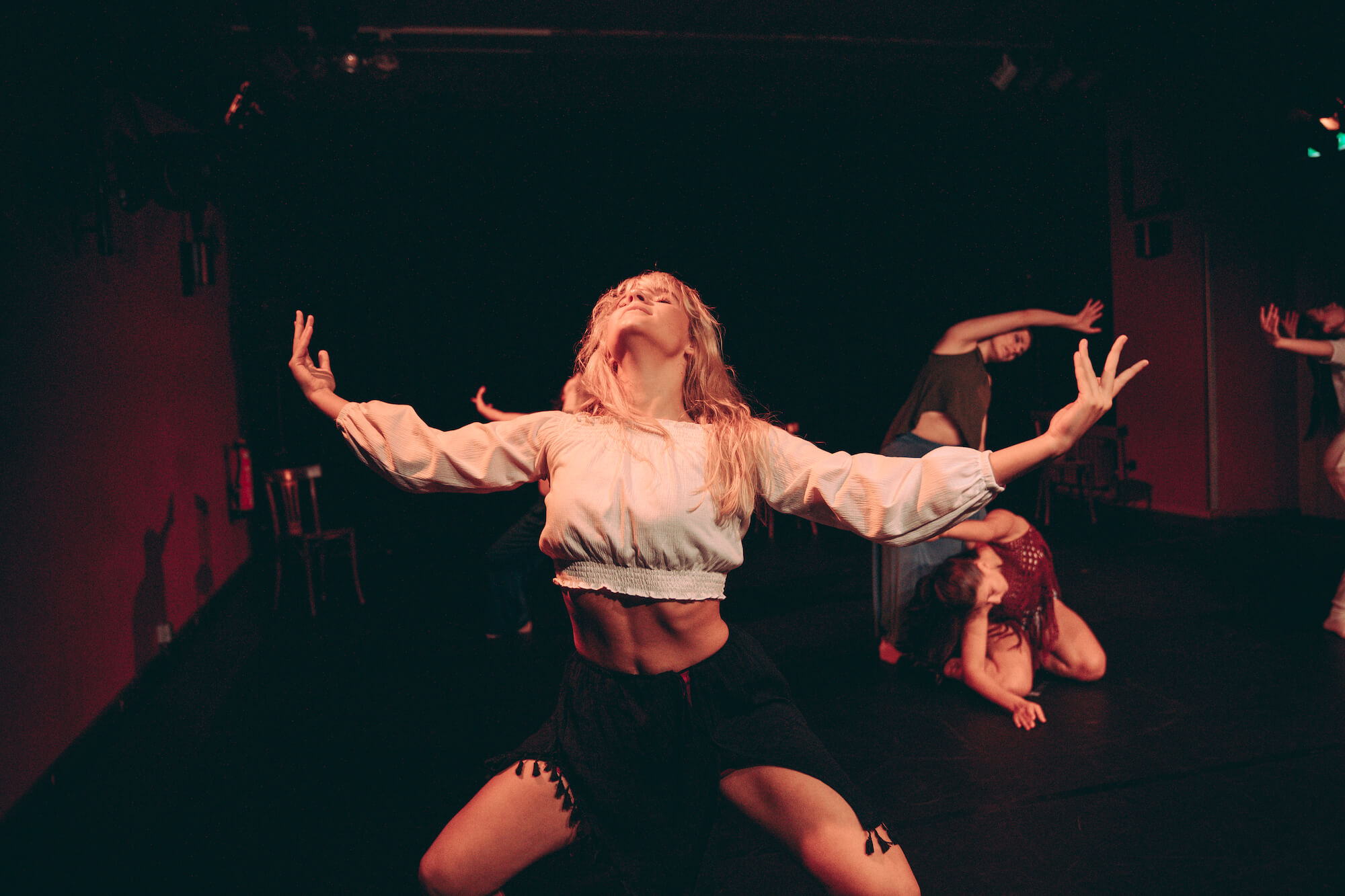 Fünf Tänzerinnen aus dem Contemporary-Fortgeschrittenen Kurs im Alter zwischen 16 - 29 Jahren nahmen an der Produktion teil. In nur sieben Wochen lernten sie die Choreografie - meist noch nach ihren eigentlichen Kursen spät am Abend. Trotzdem war die Konzentration und Freude an dem Projekt in jeder Probe deutlich zu spüren. In den gemeinsamen Proben mit der gesamten Besetzung zeigten sich die Tänzerinnen verantwortlich, waren bestens vorbereitet und verhielten sich höflich und respektvoll allen anderen Beteiligten gegenüber.